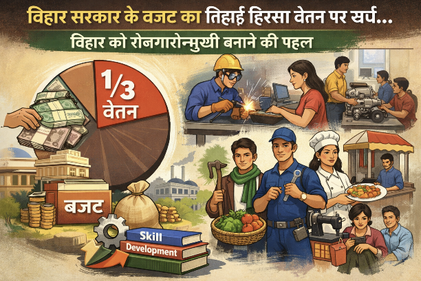 बिहार चुनाव के बाद नीतीश सरकार द्वारा 2026-27 के लिए पूर्णकालिक बजट पेश किया जिसमें 3 लाख 45 हजार करोड़ का बजट पेश किया। जिसमें कहा गया कि सरकार 70 हजार 220 करोड़ का वेतन और लगभग 35 हजार करोड़ पेंशन के मद में खर्च करने की बात कही है है।