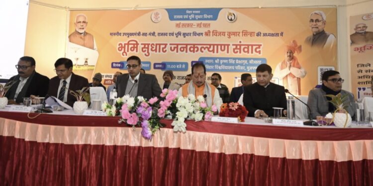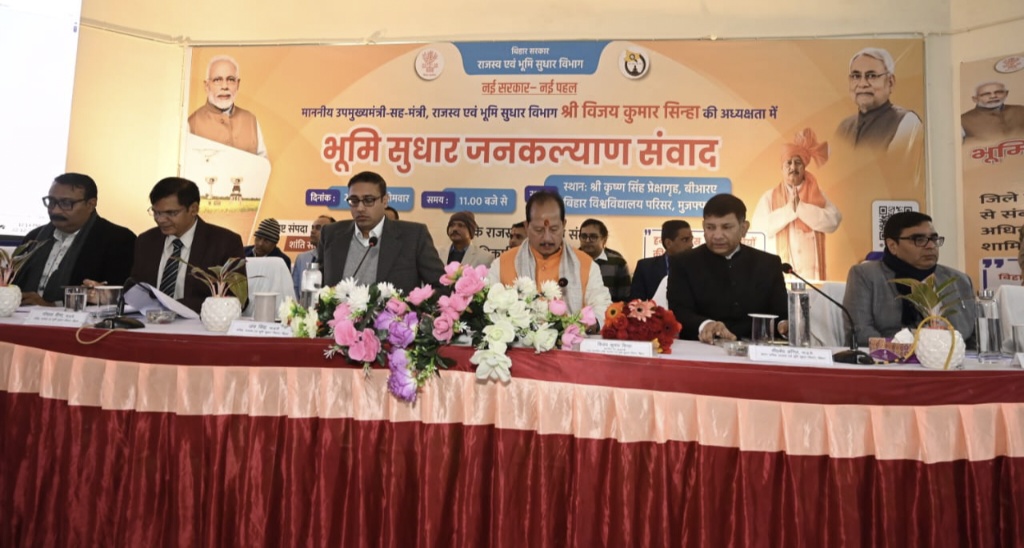 मुजफ्फरपुर स्थित बीआरए बिहार विश्वविद्यालय परिसर के श्री कृष्ण सिंह प्रेक्षागृह में भूमि सुधार जनकल्याण संवाद आयोजित किया गया। जिसमें उपमुख्यमंत्री सह मंत्री, राजस्व एवं भूमि सुधार विभाग विजय कुमार सिन्हा ने शिरकत की और कहा कि यह जनता के बीच जाकर उनकी समस्याओं को सुनने, समझने और नियम सम्मत समाधान सुनिश्चित करने का गंभीर प्रयास है। इस संवाद में सर्वाधिक शिकायत दाखिल–खारिज, परिमार्जन प्लस और ई मापी को लेकर थी। जिसपर उन्होंने अधिकारियों को निर्देश दिया कि लंबित मामलों का निष्पादन अगले 15 दिनों में किया जाये, ताकि जनकल्याण संवाद में लोगों को इन बातों के लिये परेशान ना होना पड़े।