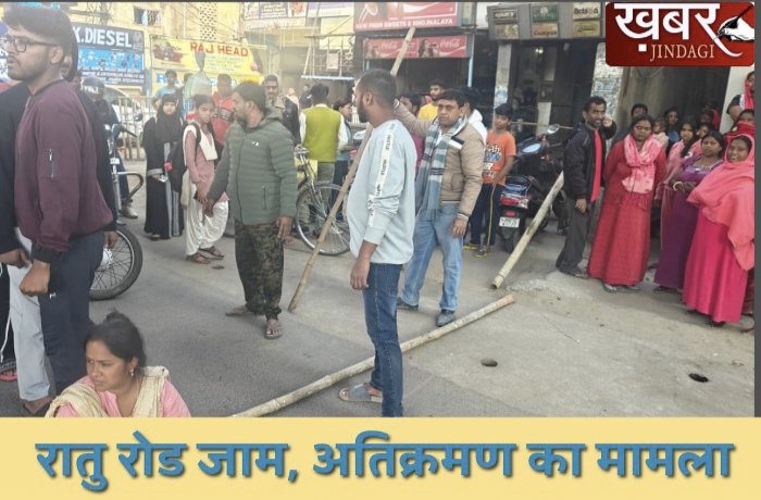 राजधानी के पॉस इलाका कहे जाने वाले सुखदेव नगर थानाक्षेत्र में मंगलवार को अतिक्रमण मुक्त कराया गया। जिसके विरोध में बुधवार को सुबह से ही अतिक्रमणकारियों ने पूरे इलाके को जाम कर रोड पर ही प्रदर्शन करने लगे जिससे रातु रोड पर वाहनों की एक लंबी कतार लग गई। स्कूल बस, एम्बुलेंस और दफ्तर जाने वाले लोगों का इस ठंडी में भी पसीना छूट गया।