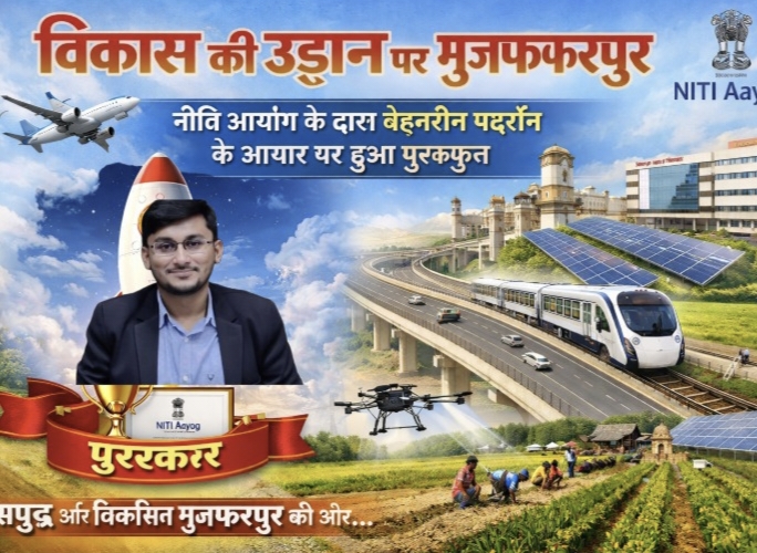 मुजफ्फरपुर जिले को नीति आयोग द्वारा आकांक्षी जिला कार्यक्रम के अंतर्गत उत्कृष्ट प्रदर्शन के आधार पर लगभग 10 करोड़ रुपये की प्रोत्साहन राशि मिली है। यह जिले के लिए गौरव और उपलब्धि का ऐतिहासिक क्षण है। जिले में चलाये गये अभियानो, जमीनी स्तर पर नियमित निरीक्षण एवं अधिकारियों के साथ की गई समीक्षा ने जिले के विकास को गति दी। जिसके परिणाम स्वरूप जिले को राष्ट्रीय स्तर पर पहचान मिली। अब जिला पदाधिकारी द्वारा तैयार कार्य योजना एवं अनुशंसा के आलोक में नीति आयोग द्वारा 9 करोड़ 56 लाख रुपये की लागत से 8 महत्वपूर्ण विकास योजनाओं को मंजूरी दी गई है। इन योजनाओं के माध्यम से जिले में शिक्षा, स्वास्थ्य और कृषि क्षेत्र को सुदृढ़ कर गांवों की तस्वीर बदलेगी।