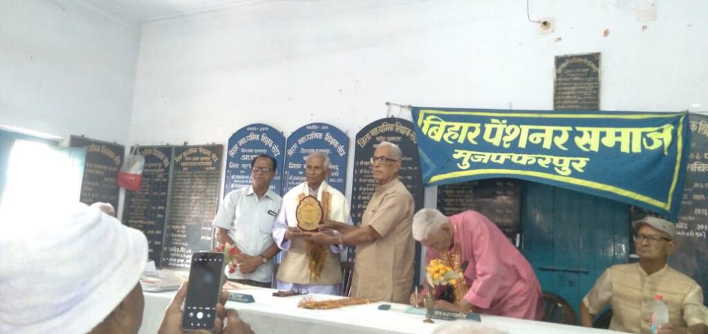 बिहार पेंशनर समाज की ओर से शनिवार को सम्मान समारोह का आयोजन किया गया। यह आयोजन माध्यमिक शिक्षक संघ भवन माड़ीपुर मुजफ्फरपुर के सभागार में किया गया। इस समारोह की अध्यक्षता नर्मदेश्वर प्रसाद सिंह ने की।