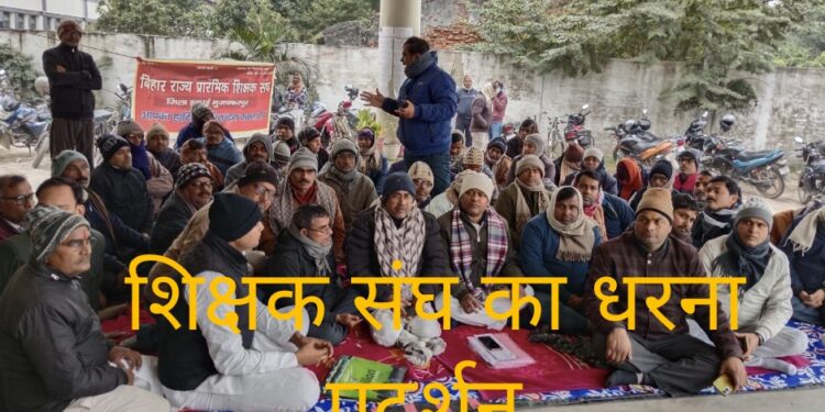 नियोजित शिक्षकों के प्रोन्नति एवं स्थानांतरण की मांग को लेकर बिहार राज्य प्रारंभिक शिक्षक संघ ने राज्यव्यापी आह्वान पर जिला अध्यक्ष जितेंद्र कुमार यादव की अध्यक्षता में मुजफ्फरपुर के जिला शिक्षा पदाधिकारी कार्यालय के समक्ष धरना प्रदर्शन किया। इस धरना में पूरे मुजफ्फरपुर से शिक्षक उपस्थित रहे।धरना को संबोधित करते हुए संघ के जिला अध्यक्ष जितेंद्र कुमार यादव ने कहा कि 20 वर्षों से शिक्षा प्रदान करने वाले नियोजित शिक्षक विभाग के उदासीन रवैये के कारण नियम होने के बाबजूद प्रोन्नति एवं स्थानांतरण पाने से वंचित है। सरकार सिर्फ शिक्षकों की समस्या समाधान करने का खोखला आश्वासन देती रही हैं।